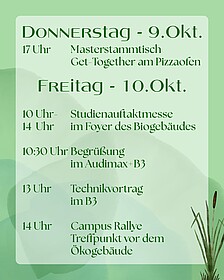 Zu dem Pizza- und Spieleabend solltest Du Dich anmelden, damit auch genug für Dich und alle anderen da ist. Wir sitzen nett zusammen, quatschen und essen Pizza. [Bei guter Stimmung, entsteht auch gerne mal eine Tanzfläche ;) ] Außerdem haben wir eine Auswahl an Gesellschaftsspielen für Dich parat. Beim Flunkyball-Turnier kannst du deine Kommilitonen bei einem Bierchen kennenlernen. Ihr könnt euch für das Turnier online anmelden, falls ihr aber sponti Bock habt mitzumachen, könnt ihr euch auch vor Ort noch anmelden. Ihr könnt euch vor Ort dann in Teams mit bis zu 5 Leuten zusammenfinden. Ihr könnt euch gerne nur als Zuschauer dazugesellen.
