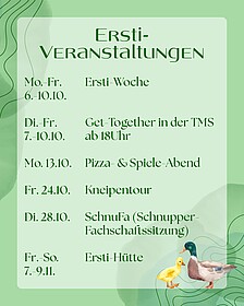 Während der Erstiwoche organisiert jede Fachschaft einen TMS-Abend. Vorbeikommen könnt ihr aber immer, ganz egal was ihr studiert!